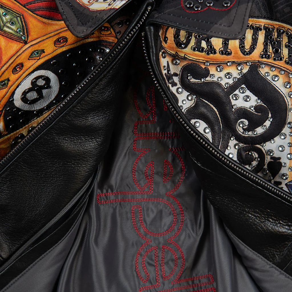 hand drawn all over printed casino themed artwork throughout the jacket